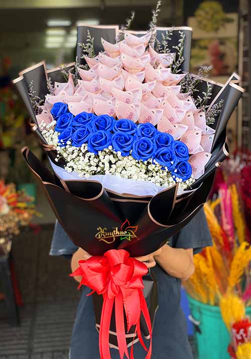 - Số lượng tờ để bó. Shop nhận công bó hoa là 500k thì số lượng sẽ là 50 tờ. Trên 50 tờ giá sẽ khác. Một số lưu ý khi đặt bó hoa tiền:Bó hoa bằng tiền là trào lưu mới. Một sự kết hợp độc đáo giữa hoa tươi và tiền mặt. Một bó hoa vừa có sức sống, thanh cao từ hoa tươi vừa thực tế của tiền mặt. Chắc chắn người nhận hoa rất thích và cảm động. Bạn cũng có thể kết hợp hoa Sáp với tiền sẽ bền và để được lâu hơn.