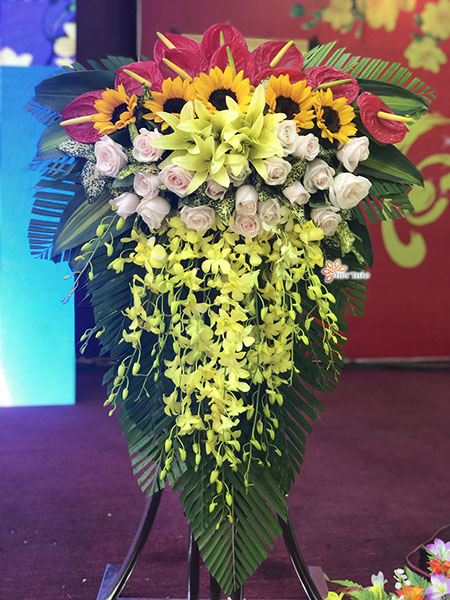 Hoa để bục phát biểu trong các hội nghị thường mang phong cách trang trọng và lịch sự. Chúng tôi sử dụng các loại hoa như hoa hồng, hoa lan, hoa cẩm chướng, kết hợp với lá xanh để tạo nên sự tươi mới và thanh lịch cho không gian.