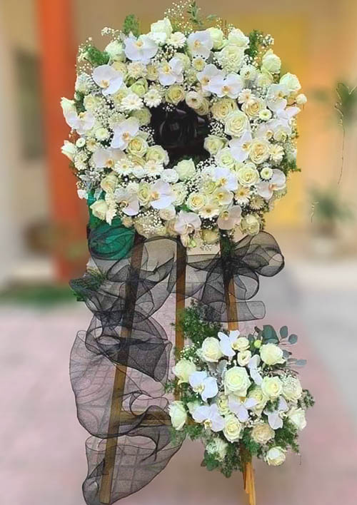 Mỗi loại hoa trong vòng hoa đám tang đều mang một thông điệp riêng. Hoa hồng trắng thể hiện sự trong sáng và tôn kính, hoa ly biểu tượng cho sự thuần khiết, trong khi đó hoa cúc trắng là lời tiễn biệt cuối cùng, đầy trang trọng.