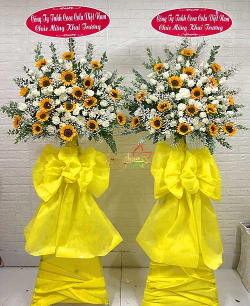 - Lẵng hoa hướng dương tươi sáng: Hoa hướng dương mang lại cảm giác tươi mới, năng động và tràn đầy năng lượng, thích hợp để chúc mừng khai trương.