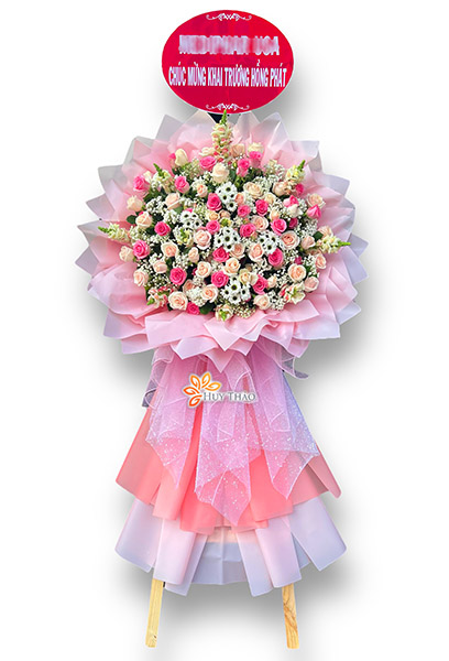 Lẵng hoa khai trương không chỉ là một phần trang trí đẹp mắt mà còn là biểu tượng của sự chào đón và thành công trong sự kiện khai trương. Sự kết hợp của các loại hoa và màu sắc tạo ra một điểm nhấn đặc biệt, tôn vinh sự nỗ lực và nỗ lực của doanh nghiệp mới.